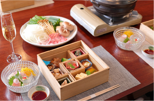 選べるご夕食。グランディ特製の会席とお鍋。